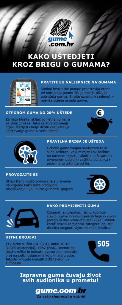 U današnje vrijeme izmijena guma velik je udarac na novčanik svakog građana. Naš cilj je pomoći vam u odabiru guma kojima ćete štedjeti na gorivu ali i pomoći vam s pravilnom brigom koja će produžiti vijek gume te osigurati vašu sigurnost i sigurnost vaše obitelji. Period je izmijene zimskih u ljetne gume već prošao, ali svejednoi pažljivo pratite sljedeće savjete: