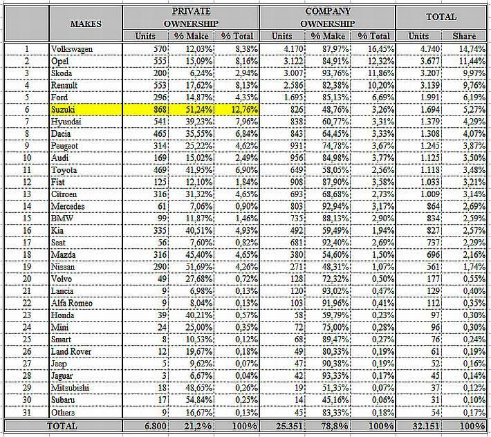 Prodaja vozila privatnim kupcima ima posebnu važnost jer su kupci ‘stvarni’ tj. sami biraju i donose odluku o kupnji za vlastiti novac, što je svakako mjerodavnije pr procjeni kupnje od one kada im automobile plaća netko drugi. Suzuki se na hrvatskom tržištu odlično ‘usidrio’ te pruža jako dobar omjer uloženog i dobivenog, a iz podataka Promocije Plus jasno je da su to i kupci prepoznali.